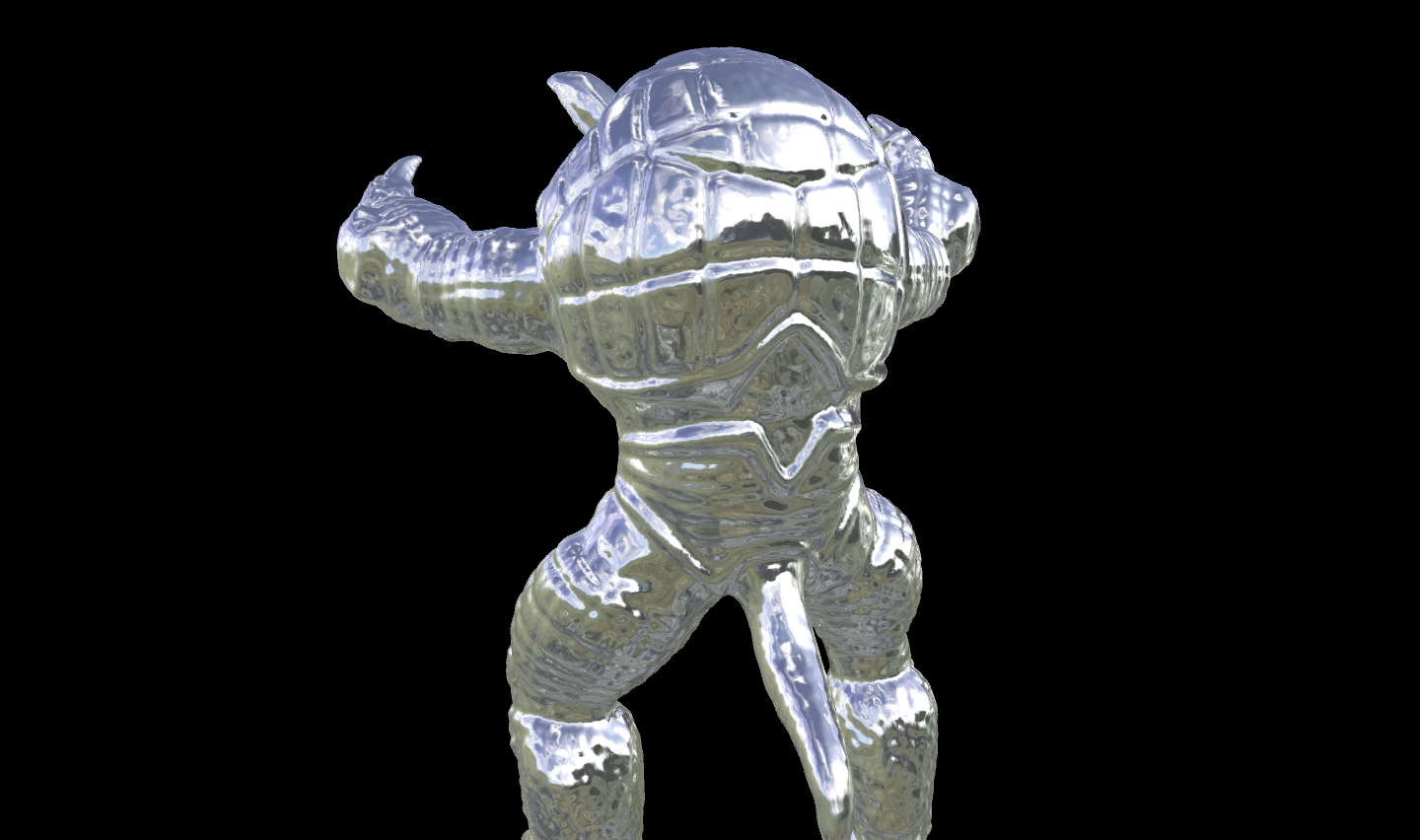 The video below demonstrates the engine running in real-time. It showcases dynamic shadow casting as the light source moves across the scene, and environment mapping on complex geometric models (the Stanford Armadillo and a Heptoroid).